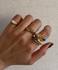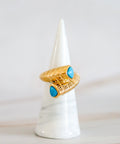 DESCRIZIONE: Anello incrociato con dettaglio a costine intorno e doppia pasta turchese nei laterali