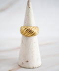 DESCRIZIONE: Anello bombato con dettaglio a torsion frontale