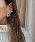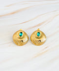 DESCRIZIONE: Orecchino a bottone con elaborazione intorno e zircone verde smeraldo frontale, chiusura a farfalla