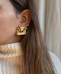 DESCRIZIONE: Orecchino luminoso a forma rettangolare con dettaglio frontale, chiusura a farfalla